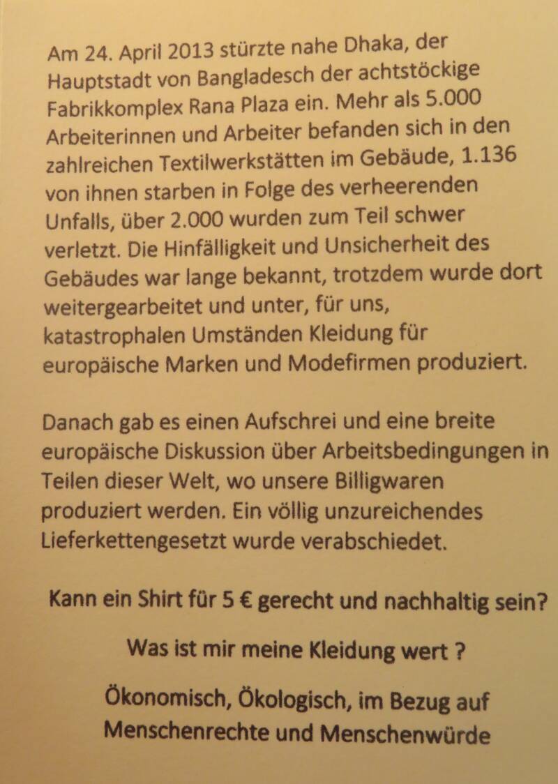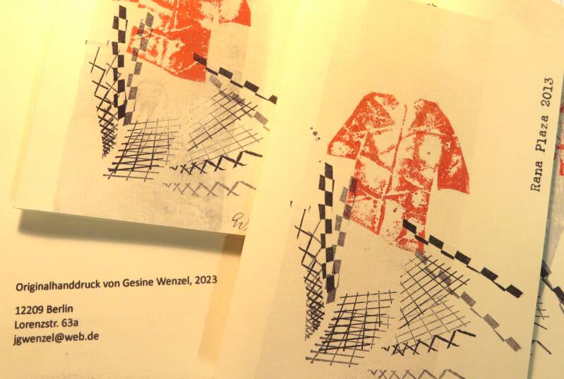 2023 jährte sich das Unglück, ich nenne es die Verantworttungslosigkeit, von Rana Plaza zum zehnten Mal. Auch zu diesem Thema habe ich Karten von Hand gedruckt, nicht nur um zu erinnern, sondern auch um aufzurütteln.
